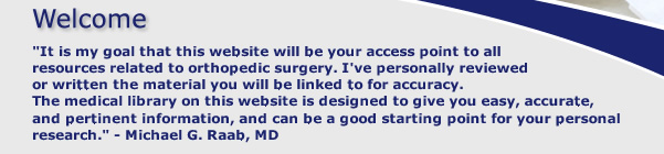 Most of our patients want to be informed about their health condition. We encourage you to learn all you can. You will find a wealth of medical information about various orthopedic conditions on this site. Just click on the link below.